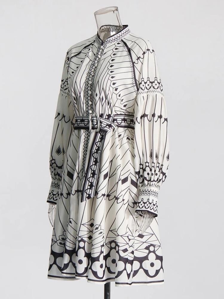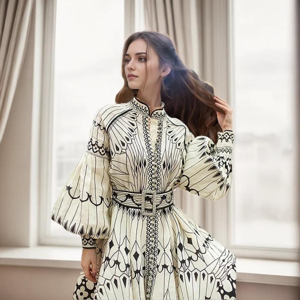 فستان متوسط الطول باكمام طويلة مقلد لتصاميم زيمرمان