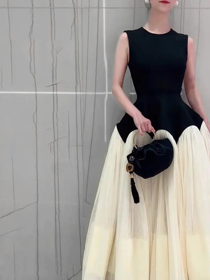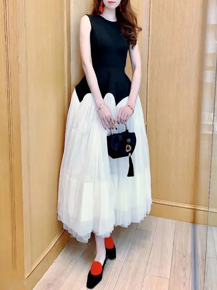 فستان بلونين أسود وأبيض