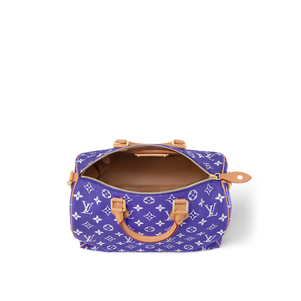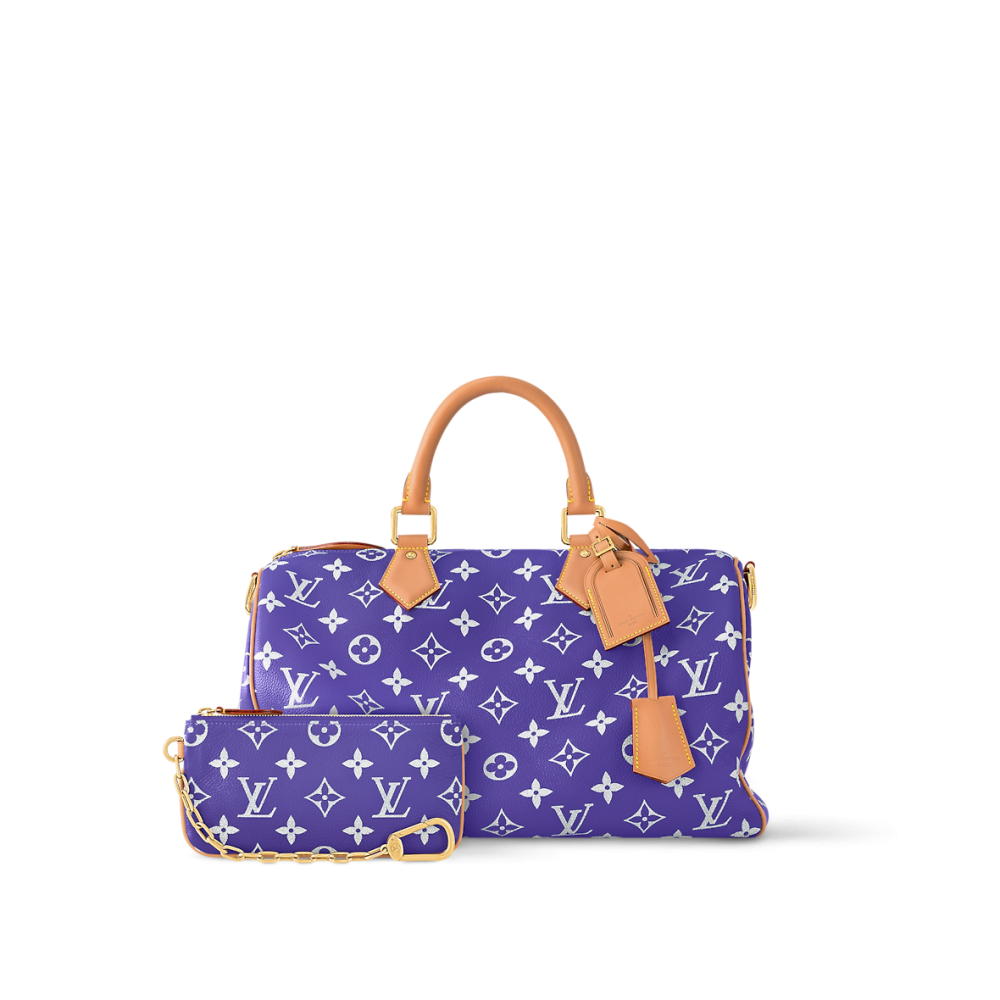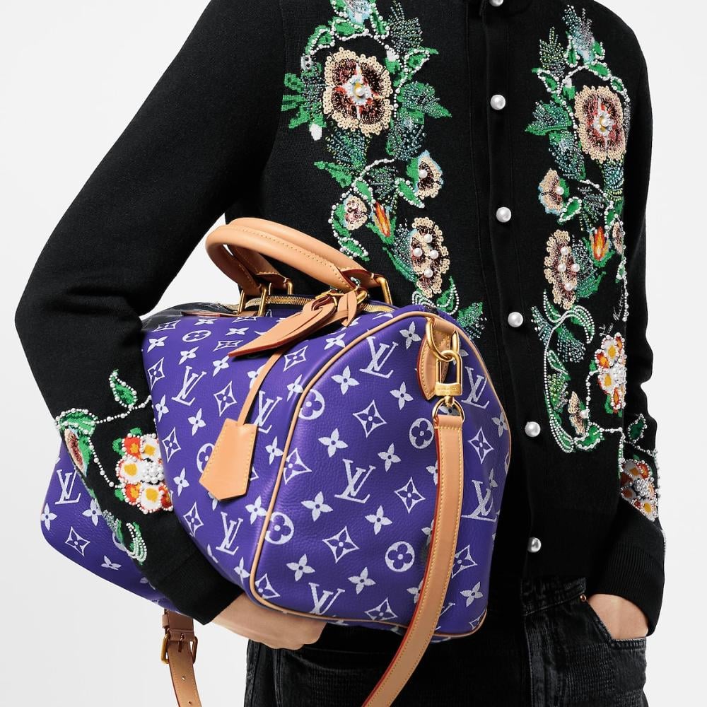 حقيبة Speedy P9 Bandoulière 40 مصنوعة من جلد العجل فائق النعومة وبألوان مستوحاة من الأحجار الكريمة. هذه النسخة الأقل تنظيمًا من Speedy الشهيرة صديقة للجسم ومريحة جدًا للحمل. كجزء من مجموعة فاريل ويليامز المستوحاة من رعاة البقر لخريف وشتاء 2024، تتميز حوامل المقبض بأحصنة منقوشة.